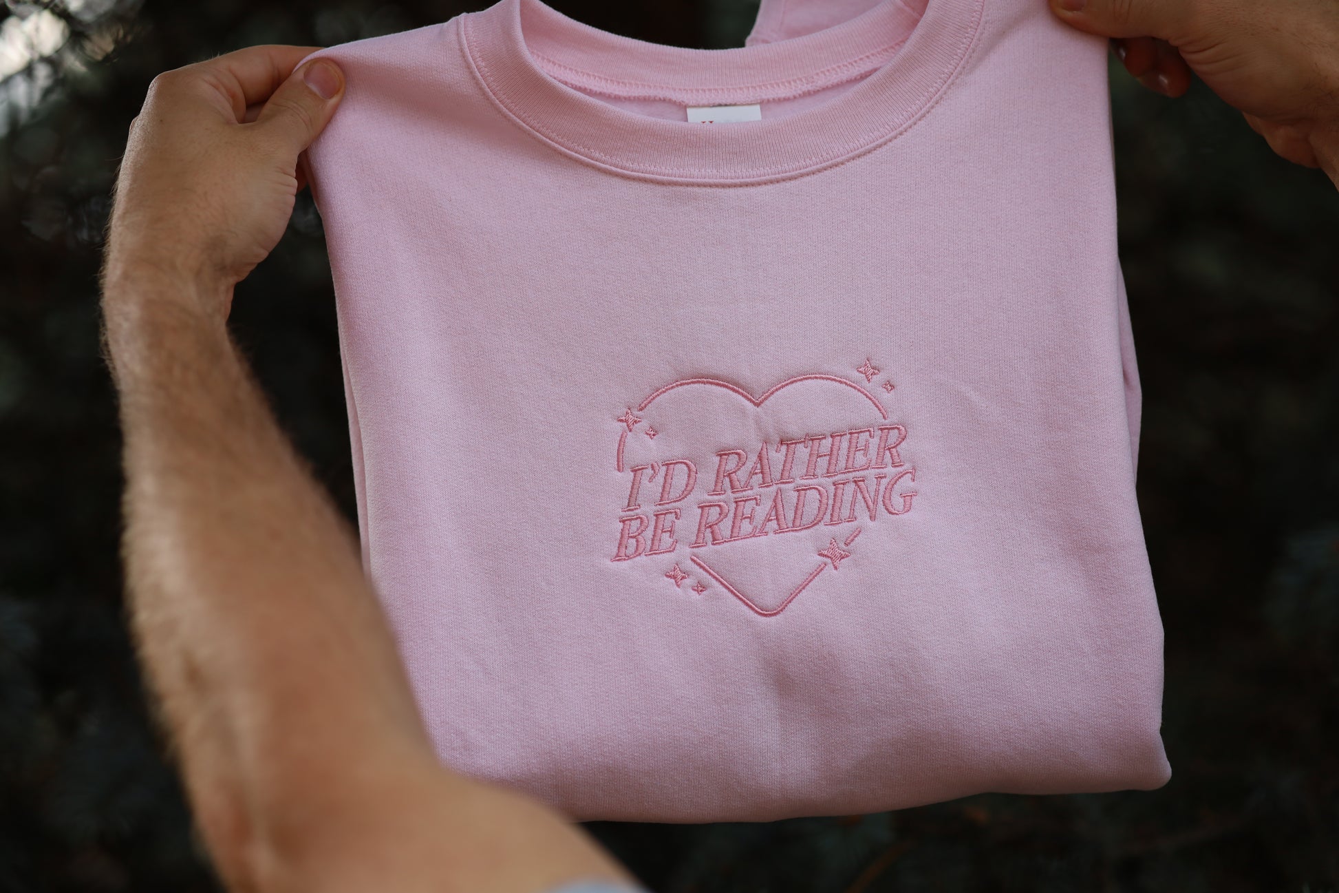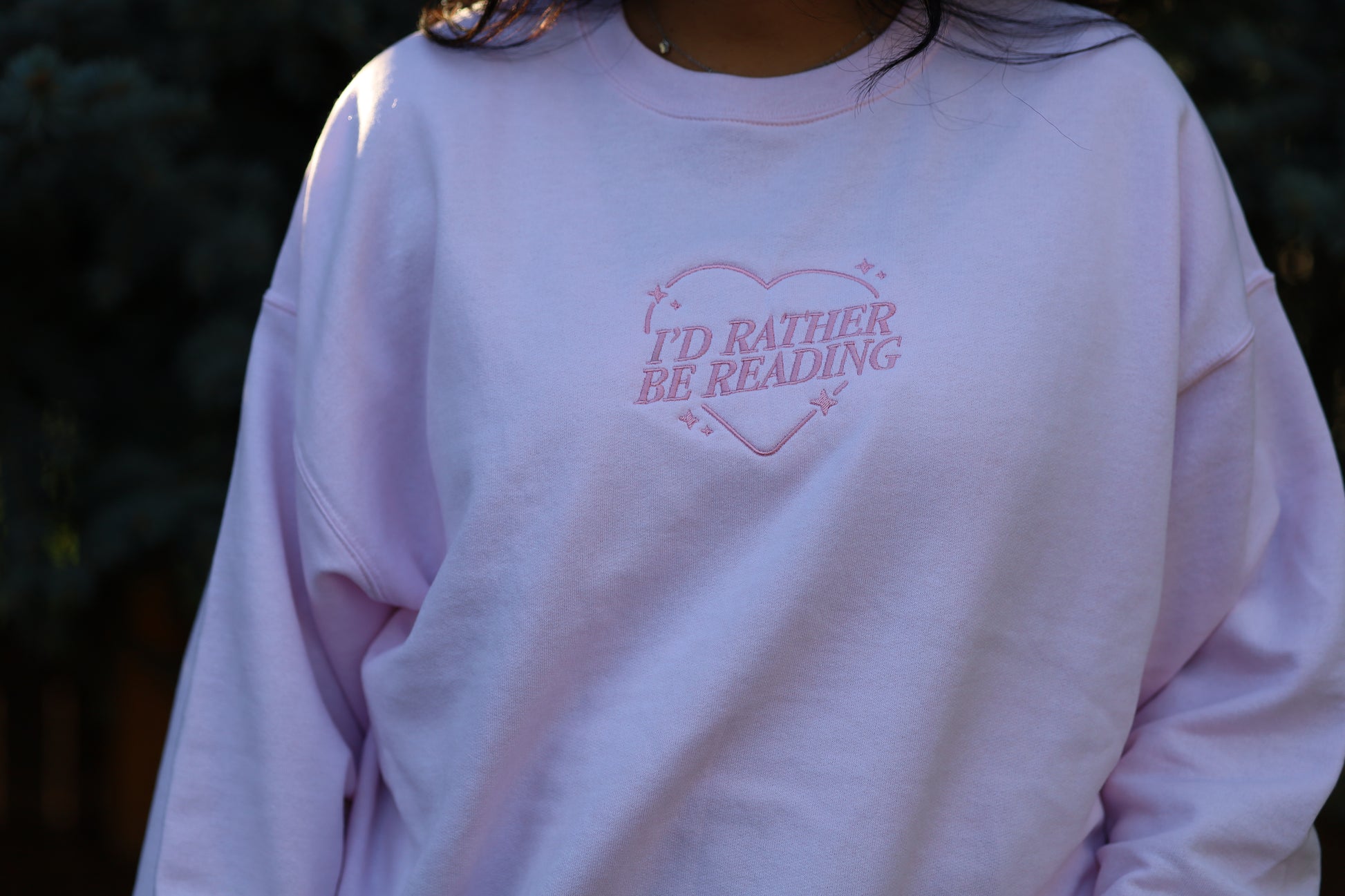 Pale Pink Crewneck Sweatshirt with a balanced blend of cotton and polyester. Perfect for a cozy evening filled with reading! Size up for oversized look.