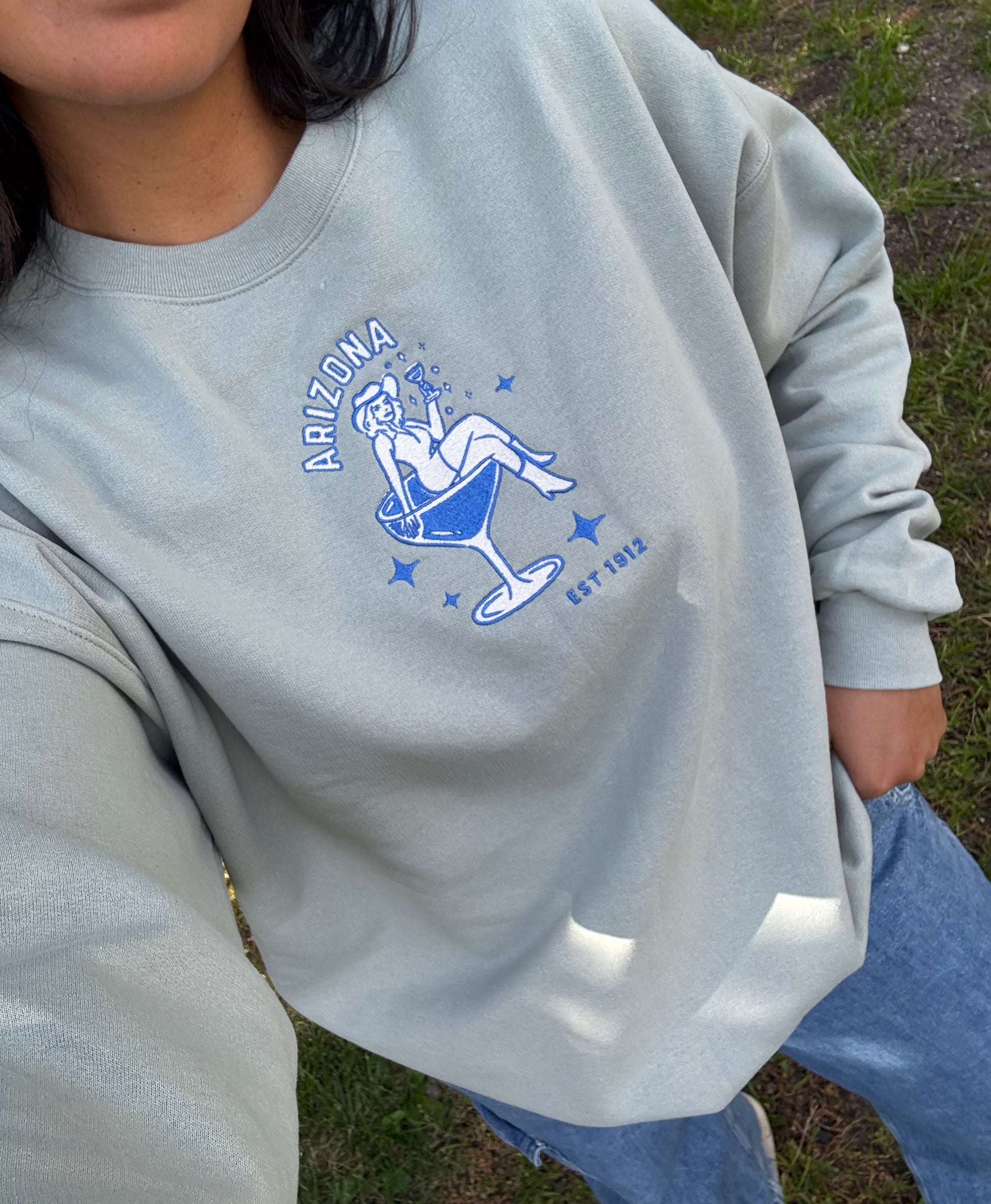 Designed by yours truly, Miss Arizona! Stonewash green crewneck with white and blue stitching. Size up for oversized look.